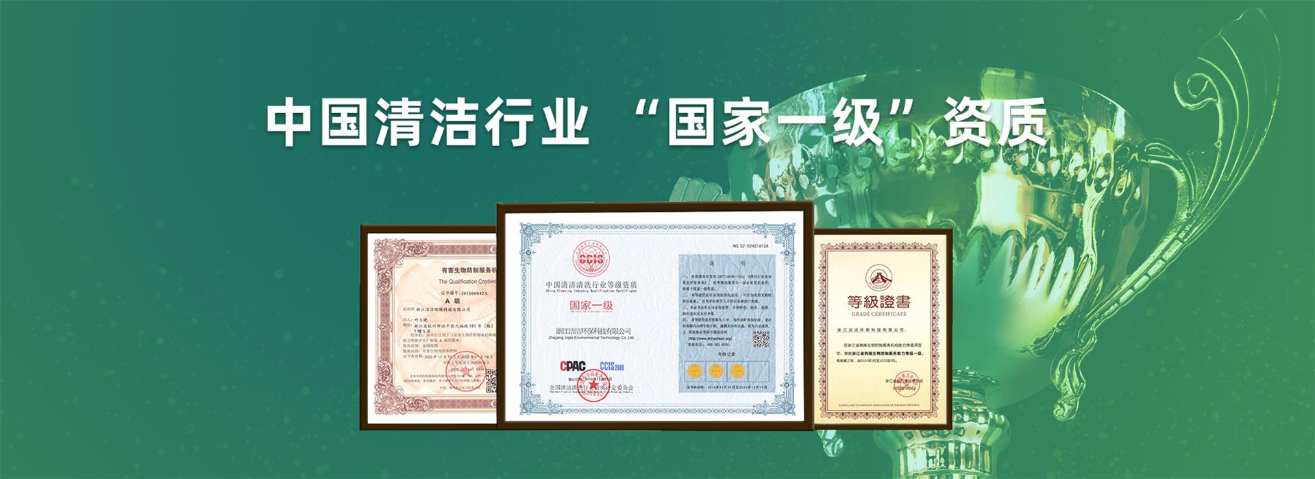 重要榮譽:“全國信用等級AAA級企業(yè)”、全國“重質量、守信 用企業(yè)”、“浙江省質量服務誠信AAA級企業(yè)”、中國中小商業(yè) 企業(yè)協(xié)會清潔行業(yè)分會常務理事員會單位